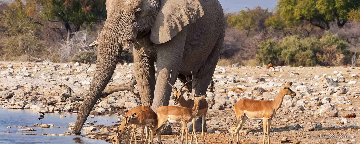 South Etosha National Park, NamibiaLeaving the Atlantic coastline behind us, we continue our journey towards Namibia’s best-known highlight of the north – Etosha National Park. The first night is spent at our lodge which neighbors the park, situated on an outcrop of dolomite rocks and overlooking a forest of Mopane and white Seringa trees. Spend the afternoon relaxing at the pool, or take a leisurely stroll through the natural bush and gardens. Optional game drives are also available.