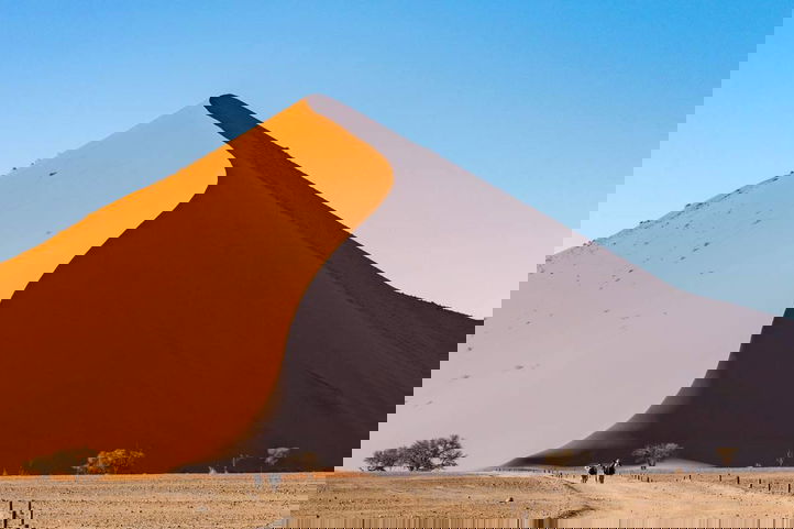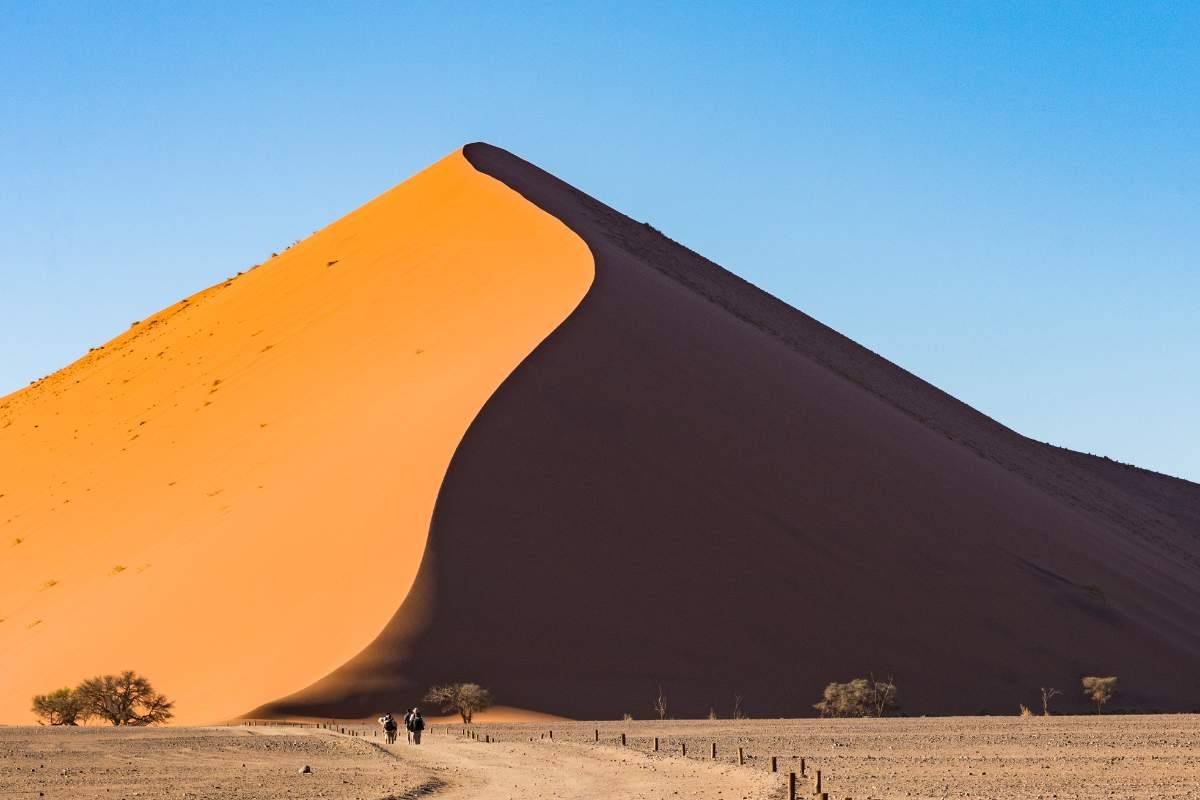 Home to towering red sand dunes that are the highest in the world, Sossusvlei is always a highlight of any vacation to Namibia. The area of the Namib Desert is fed by the Tsauchab River – and the towering dunes actually block the entire pathway of this river. It only flows through Sossusvlei every 5 to 10 years, making it a rare sight to see. The Sossusvlei dunes are about 60km from the Sesriem gate which takes you into the Namib Naukluft National Park. At just under 50,000 sq km – this is the largest park in Africa!