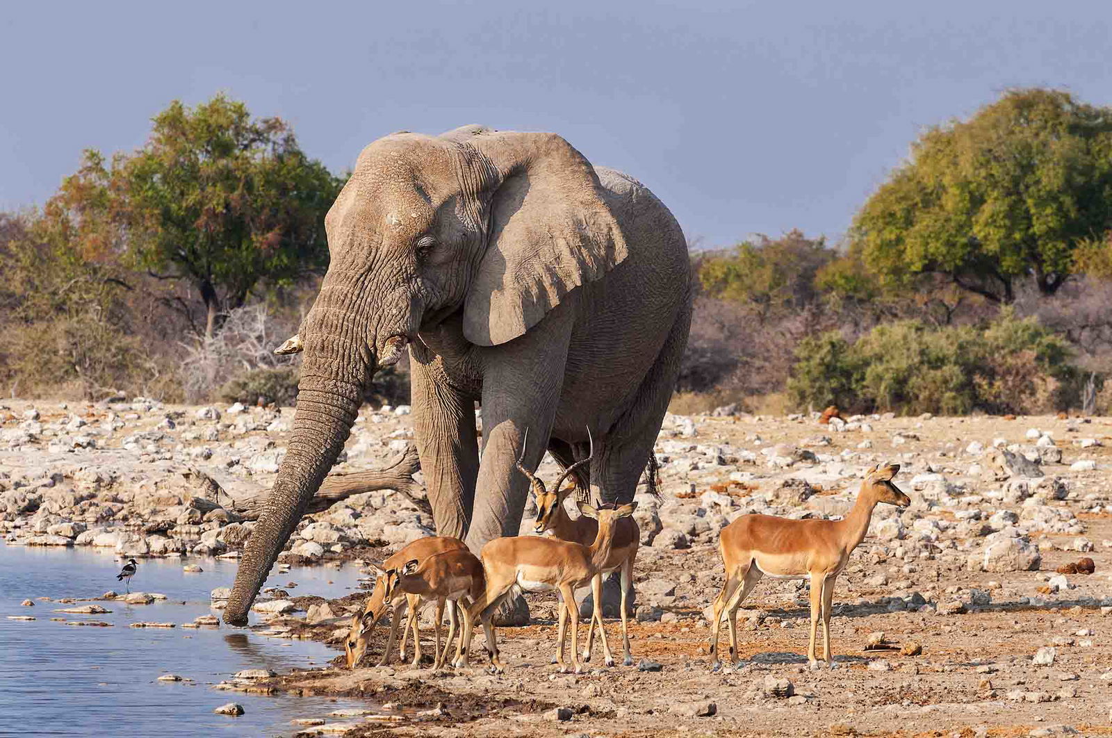 Etosha means ‘huge white area’ or ‘place of dry water’, and the National Park certainly lives up to this description – this massive salt pan can be seen from outer space. Etosha National Park is the sixth largest national park in all of Africa, and is home to large herds of elephants. We will do a number of game drives and safaris while visiting Etosha.